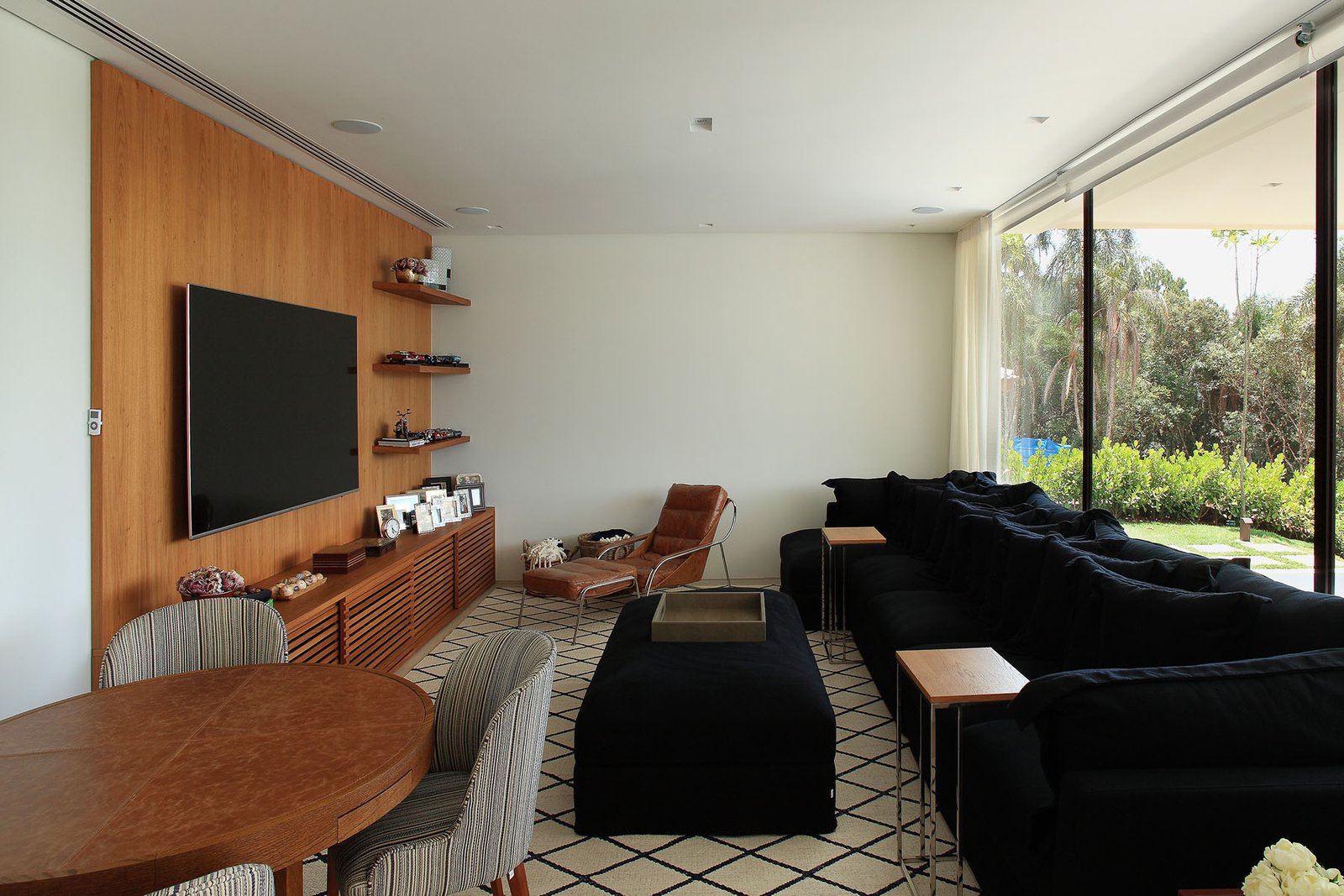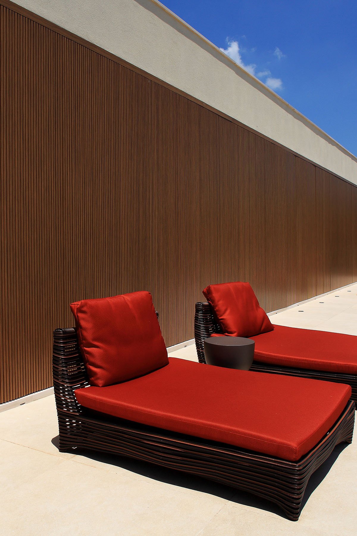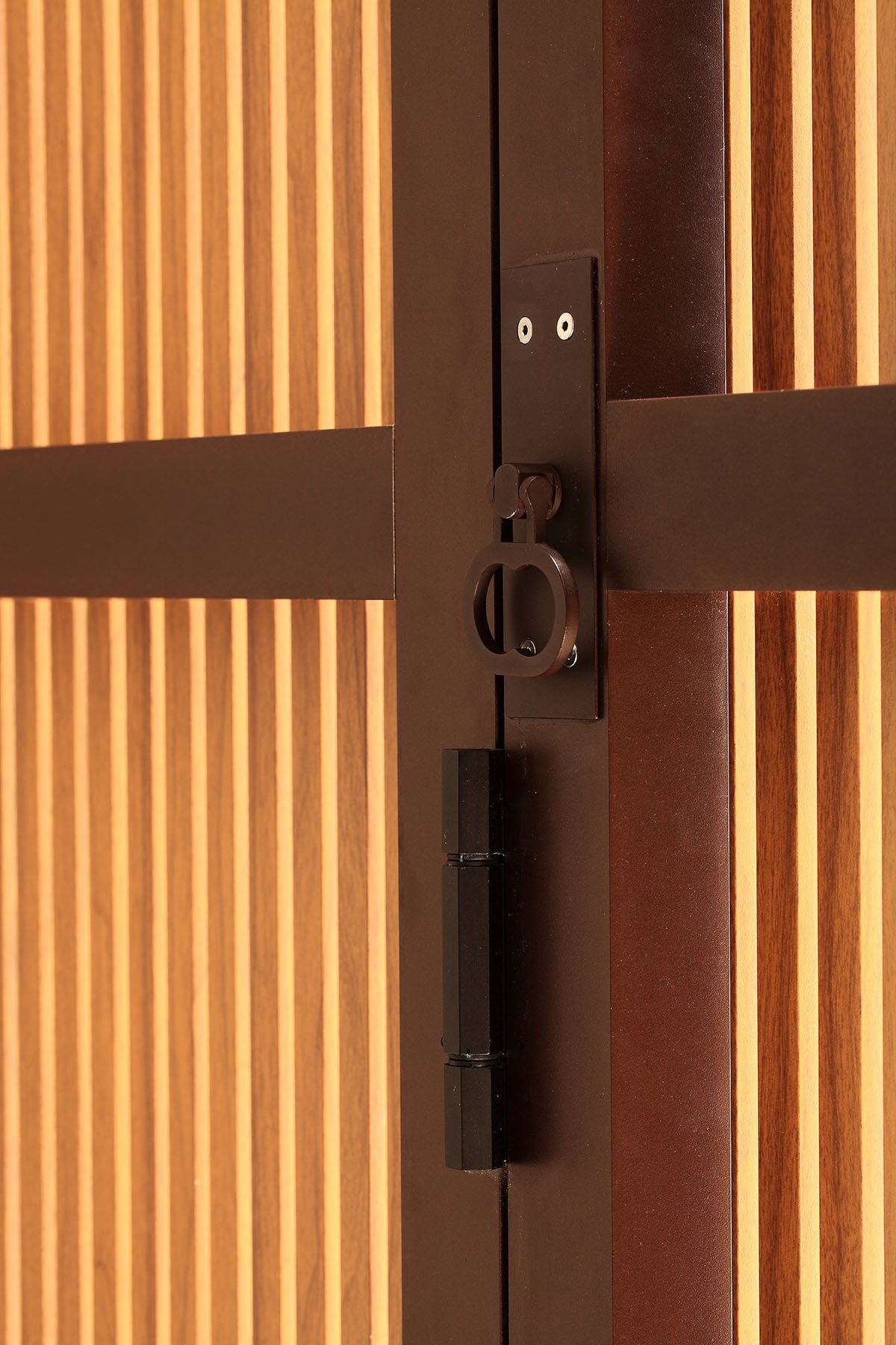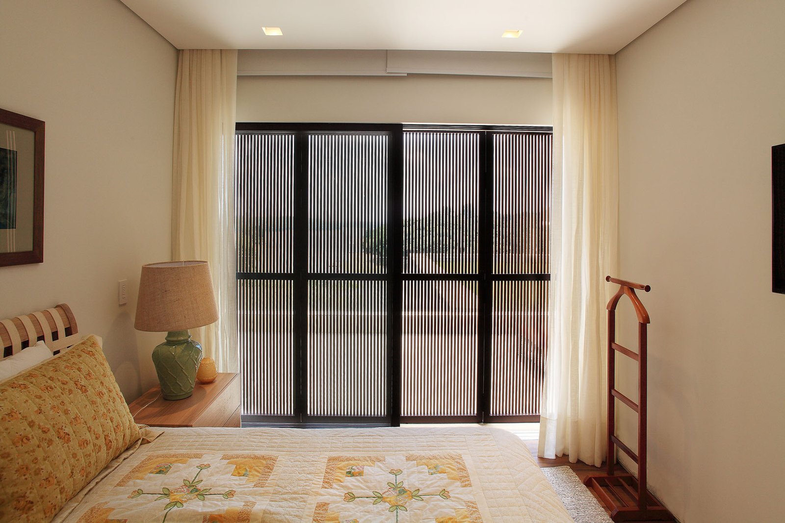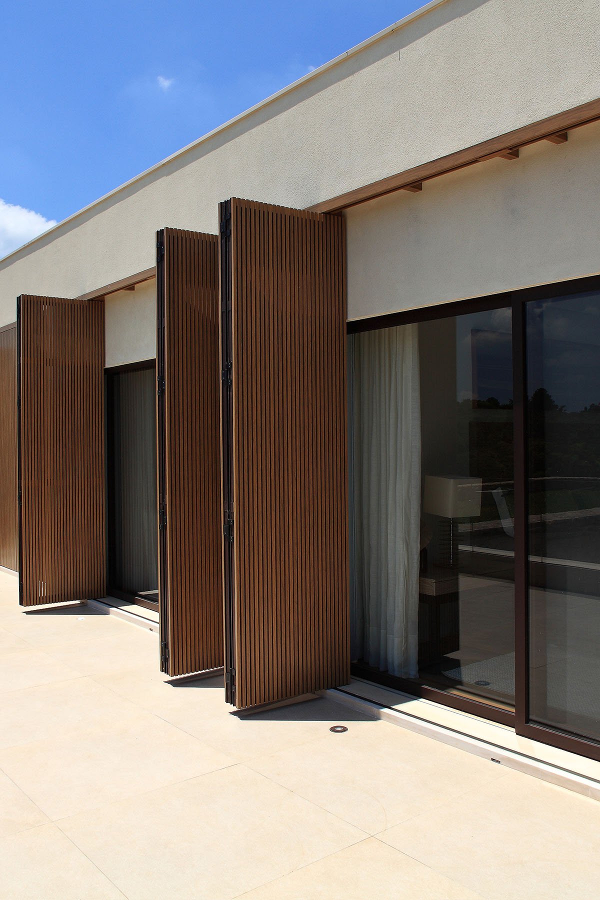Utilizamos perfil linha Sammartini 42×60 com trilhos, guias e batentes embutidos no mesmo nível. Fachada dos dormitórios e banheiros do pavimento superior conta com sistemas de brises com réguas na vertical de 20x20mm com espaçamento de 10mm com pintura especial que imita madeira e abertura sistema camarão.